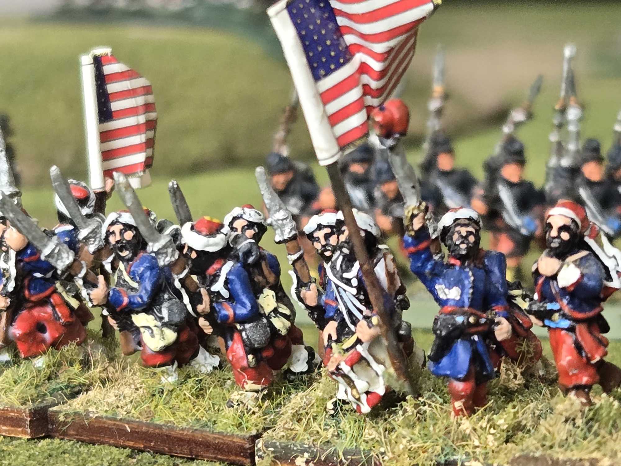 Union Zouave troops purchased recently at a convention and awaiting their new bases. The leftovers will be used to represent units in skirmish order